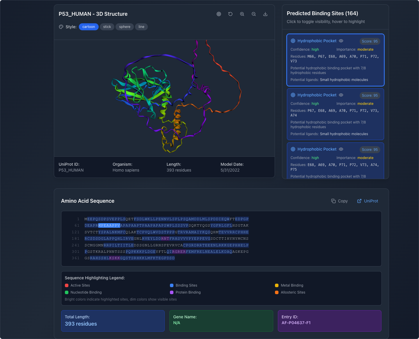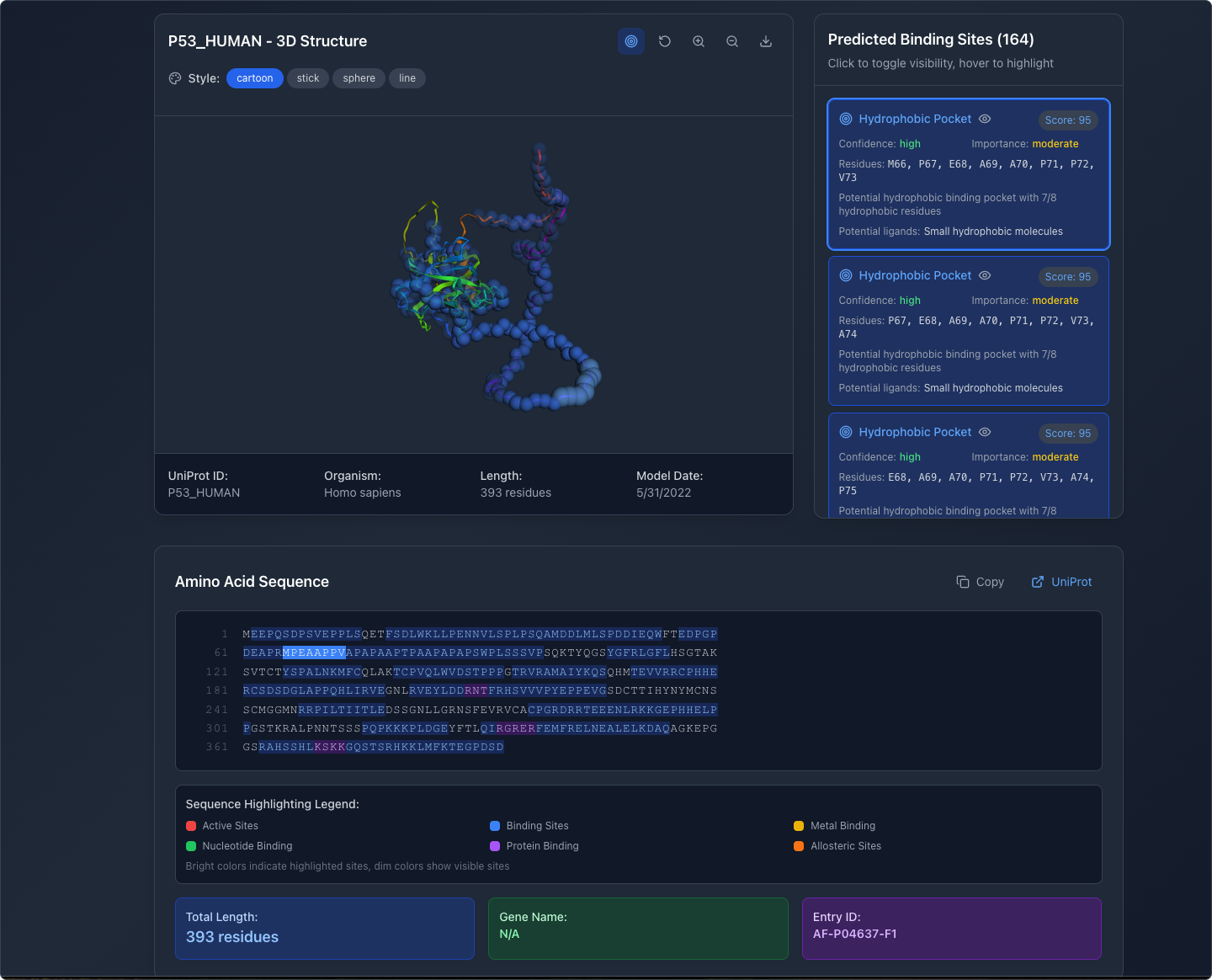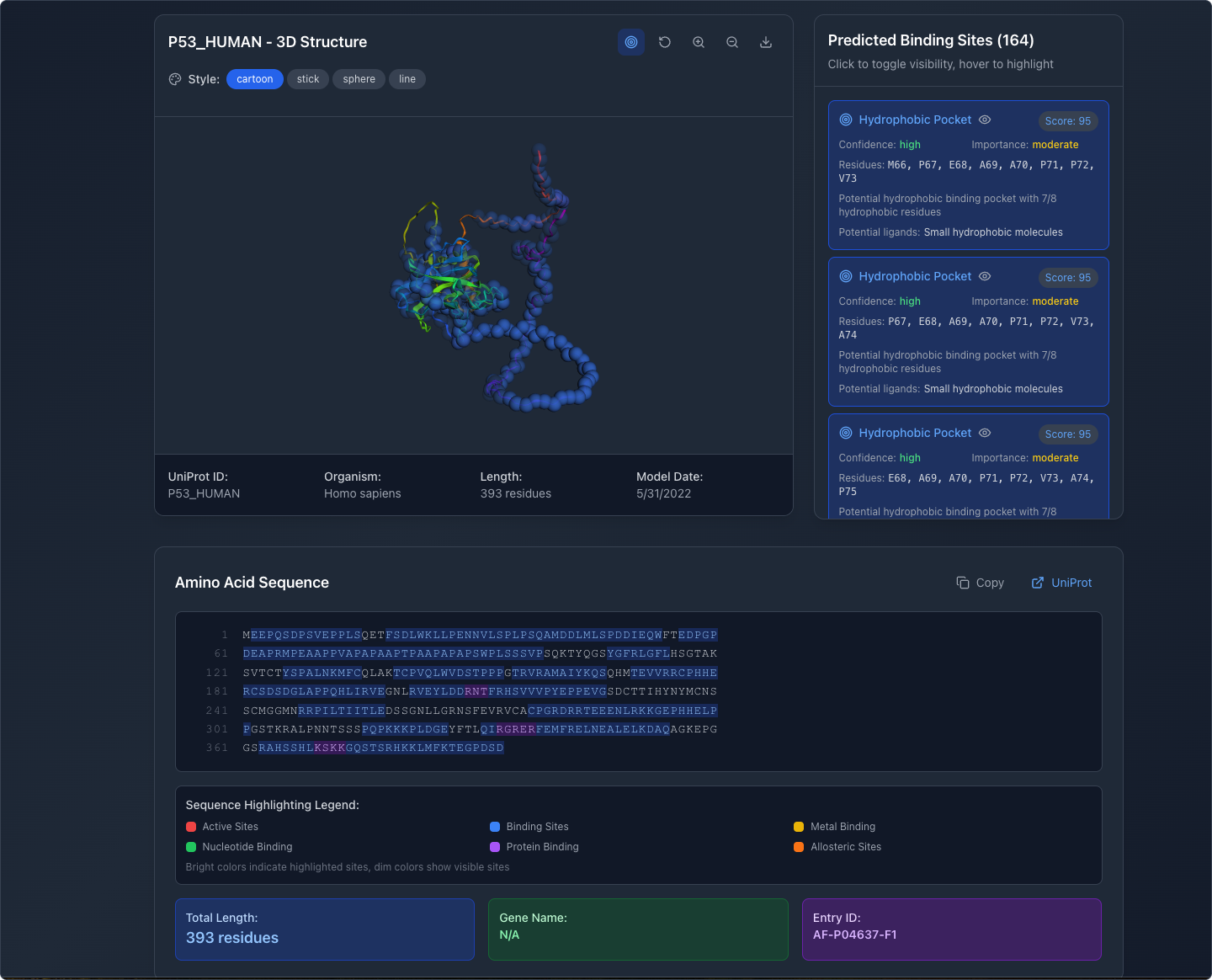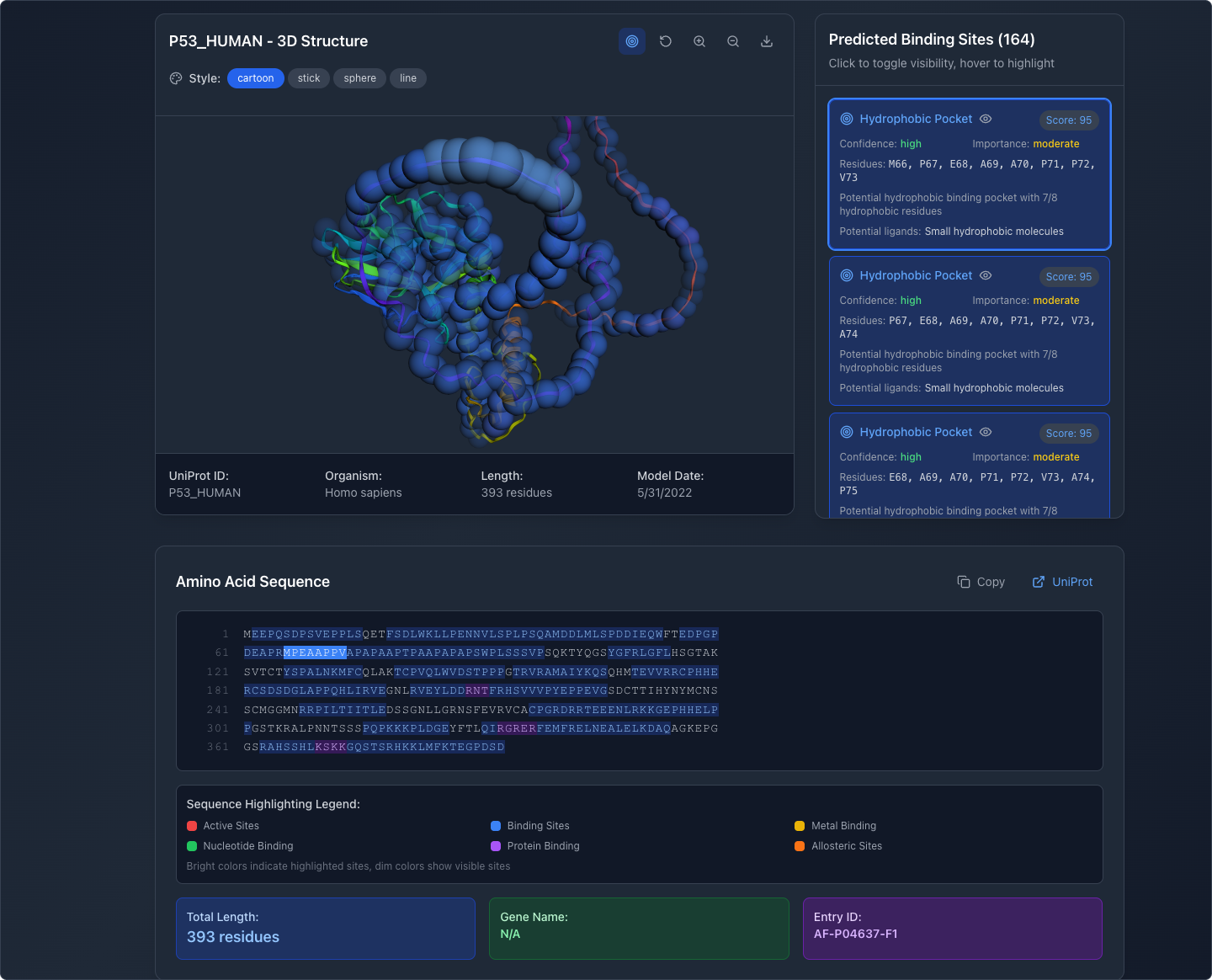 Then, I forked the project and built on the existing app design. I also wanted my app to identify potential binding sites and their relative quality.