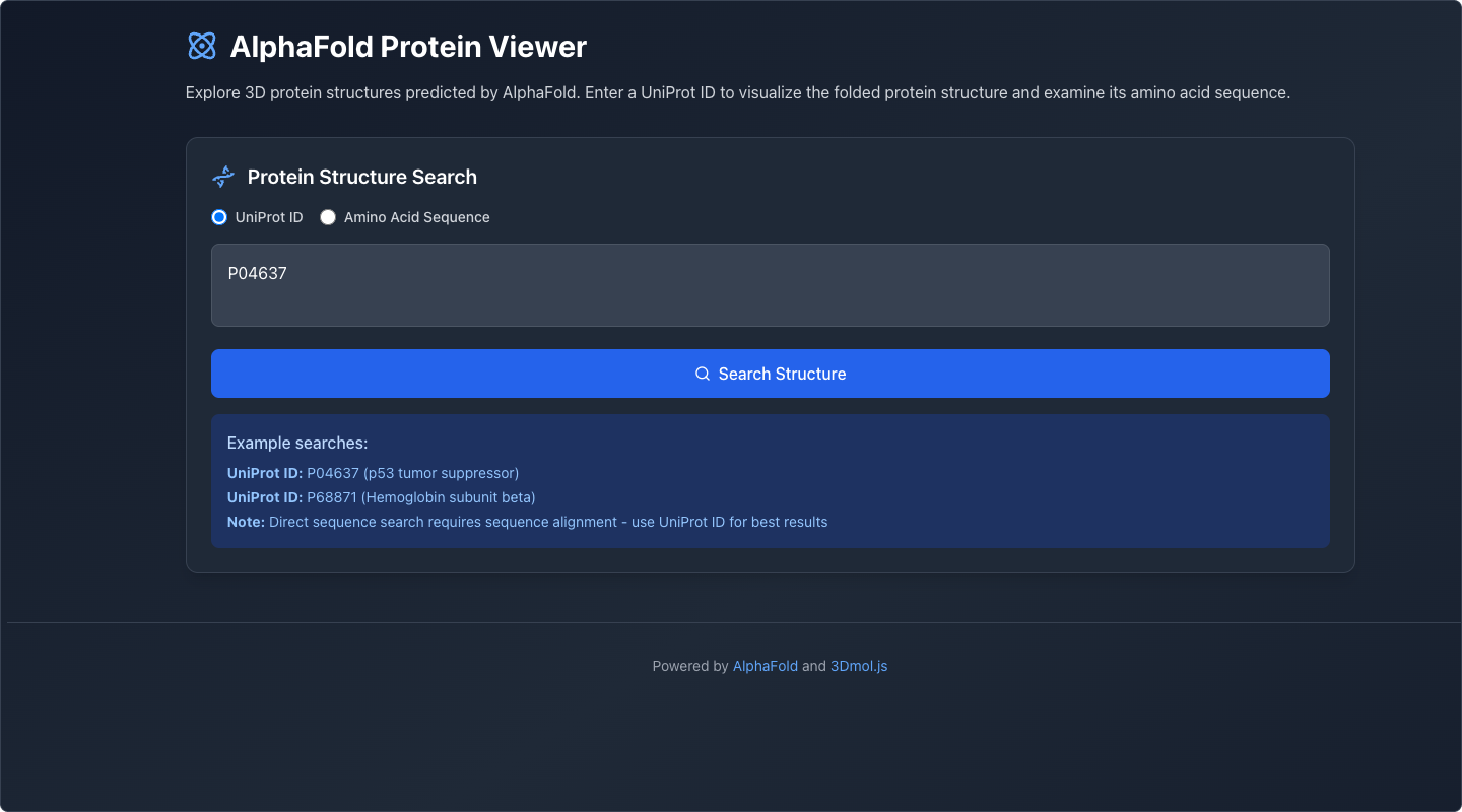 Creating a simple application using Bolt.new that allows researchers to tap into AlphaFold to view protein folding, as well as to identify potential binding locations.